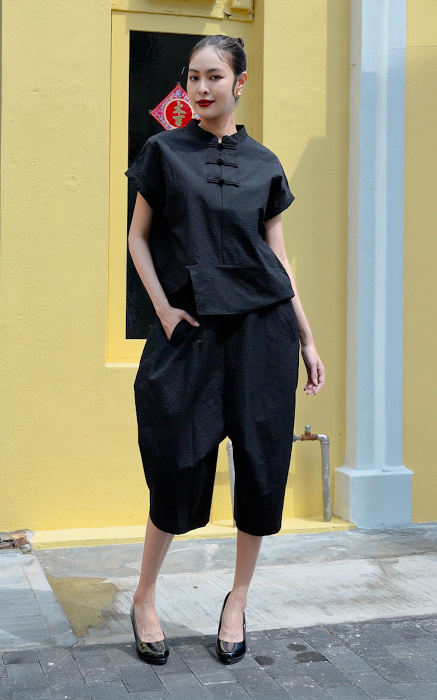 Drawstring Cotton Shirt & Pintuck Hem Cotton Pants