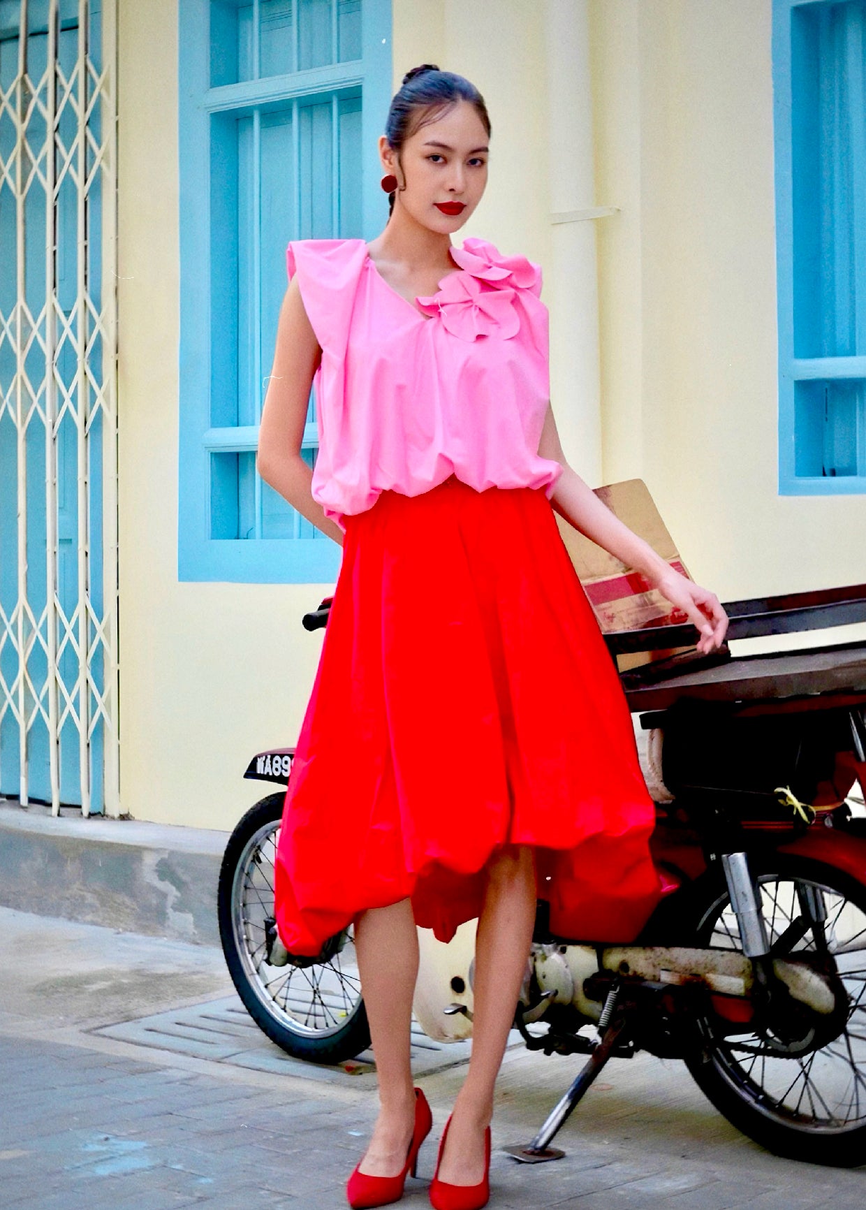 Shoulder Padded Crop Top & Waterfall Wrap Skirt