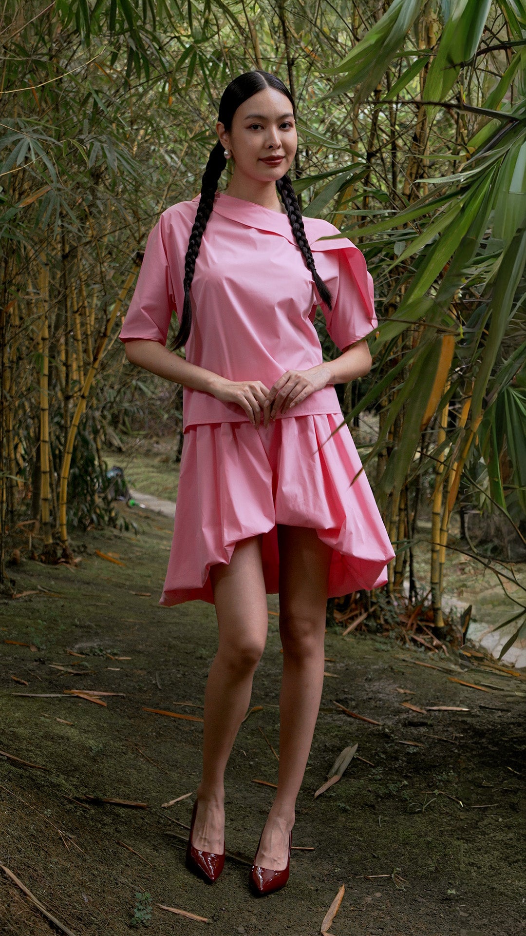 Asymmetrical Collar Cotton Top CNY - Pink / S/M
