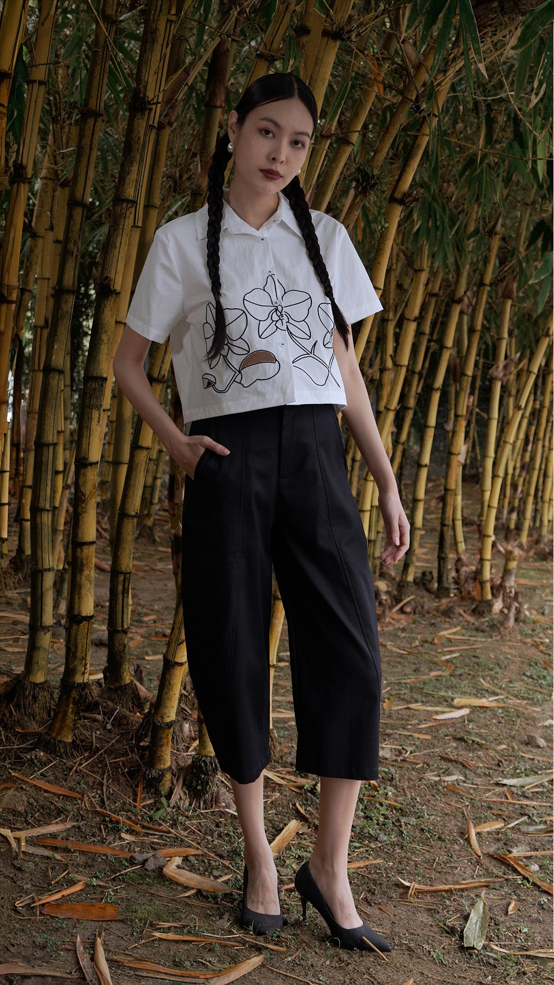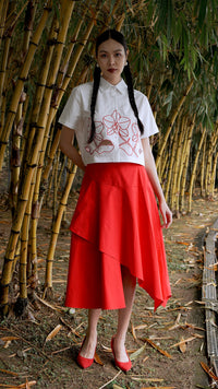 Embroidered Orchid Cotton Top CNY - Red / S/M