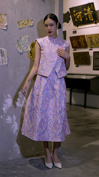 Ethereal skirt crafted from luxurious floral jacquard woven with raised rose motifs. Accented with structured front pressed pleats that create a voluminous silhouette, a side zipper closure, a fully lined interior, an A-line shape, and a midi length.