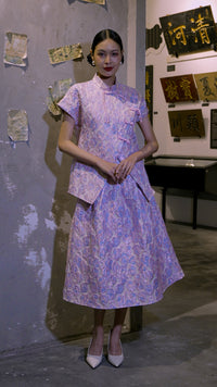 Ethereal Jacquard Overlap Cheongsam Top CNY - Lilac / S/M