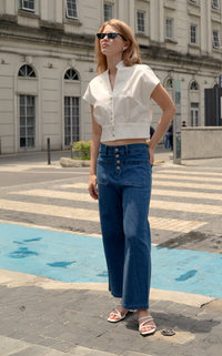 V-Neck Cap Sleeve Cotton Top