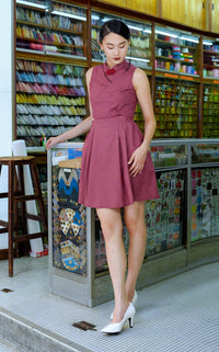 Dress crafted from lightweight pin-checked cotton, accented with peekaboo silhouette cutouts at the waist and a butterfly pankou detail. Designed with a back concealed zipper closure, elasticized side seams at the waist, sleeveless construction, and an above-knee length.