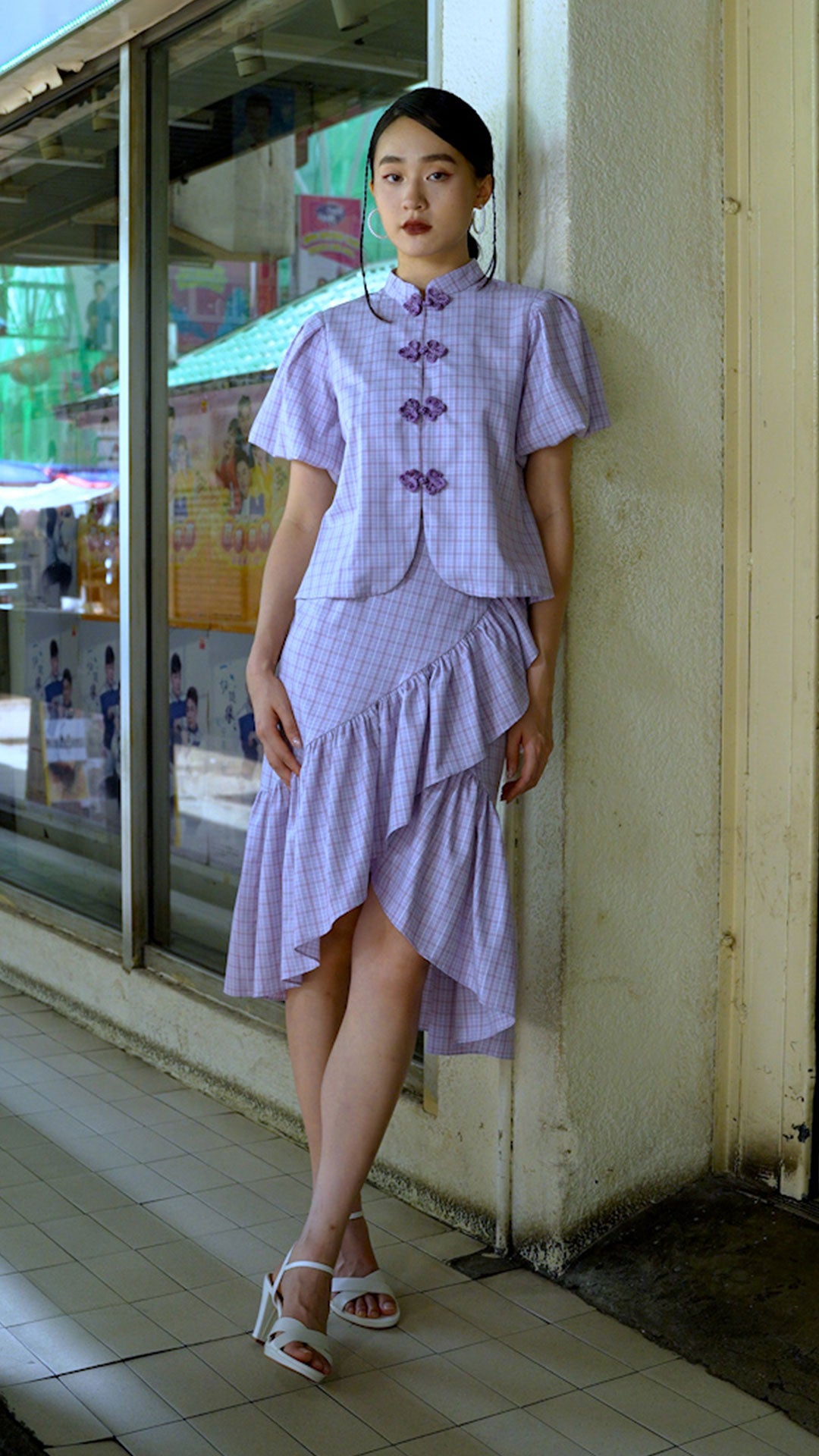 Tattersall Checked Cotton Cheongsam Top CNY Sale