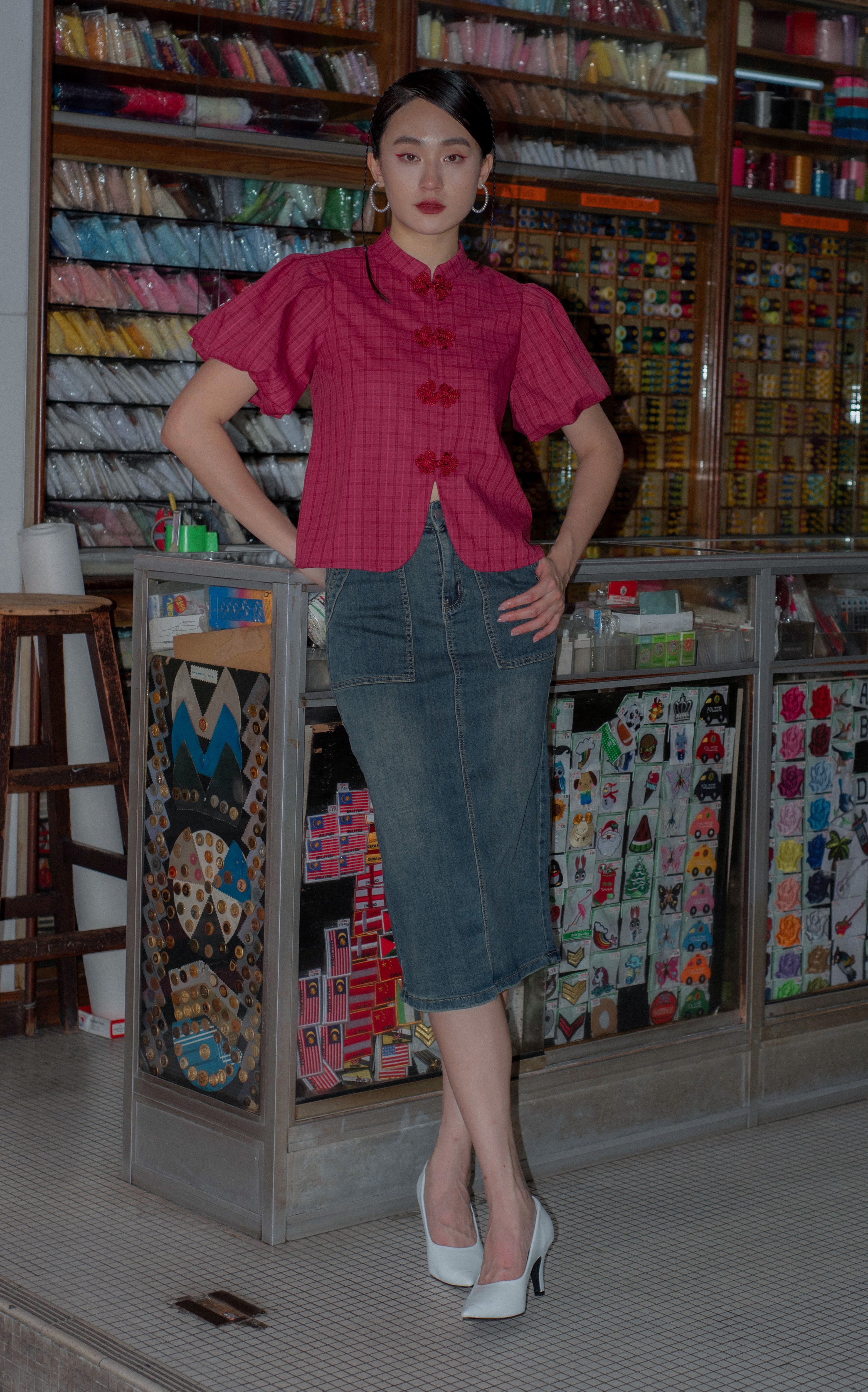 Tattersall Checked Cotton Cheongsam Top CNY - Red / S/M