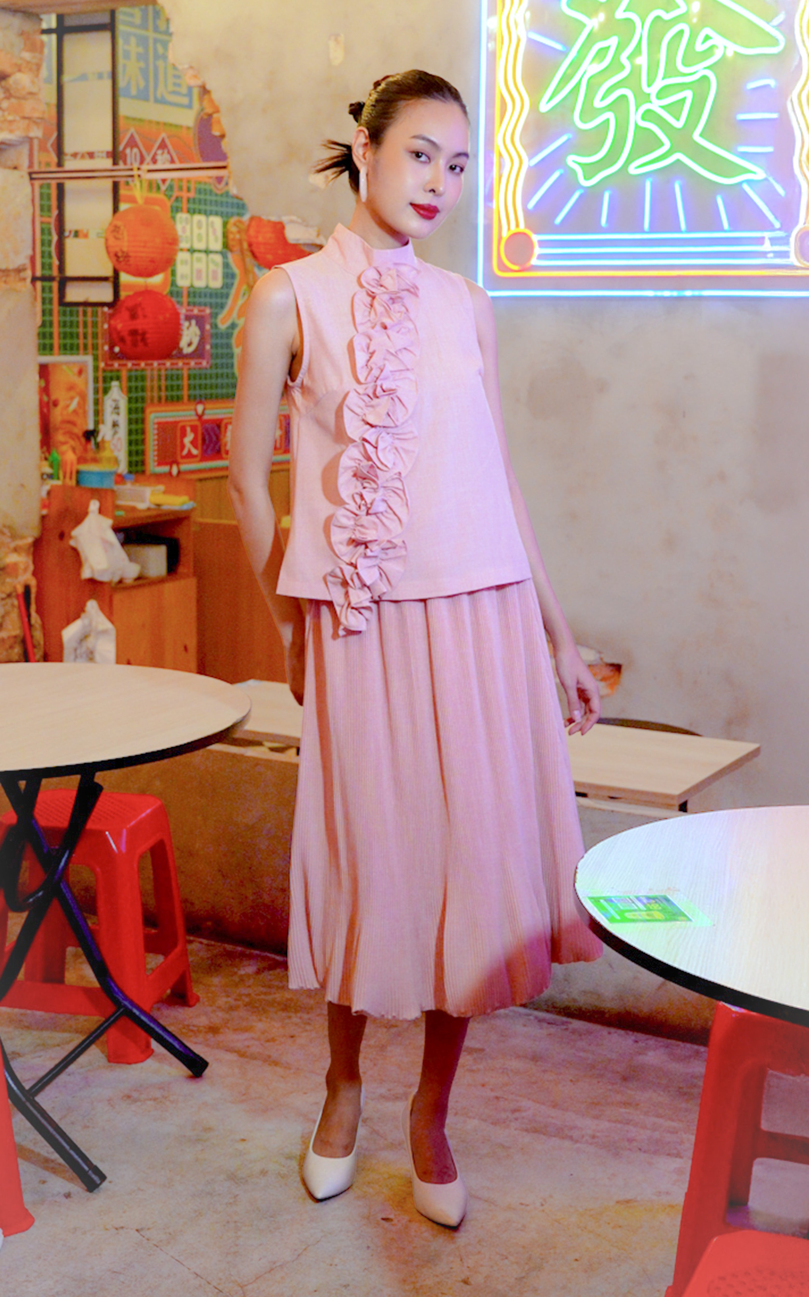 Accordion Pleated Poly Cotton Skirt CNY(Pre-Order)
