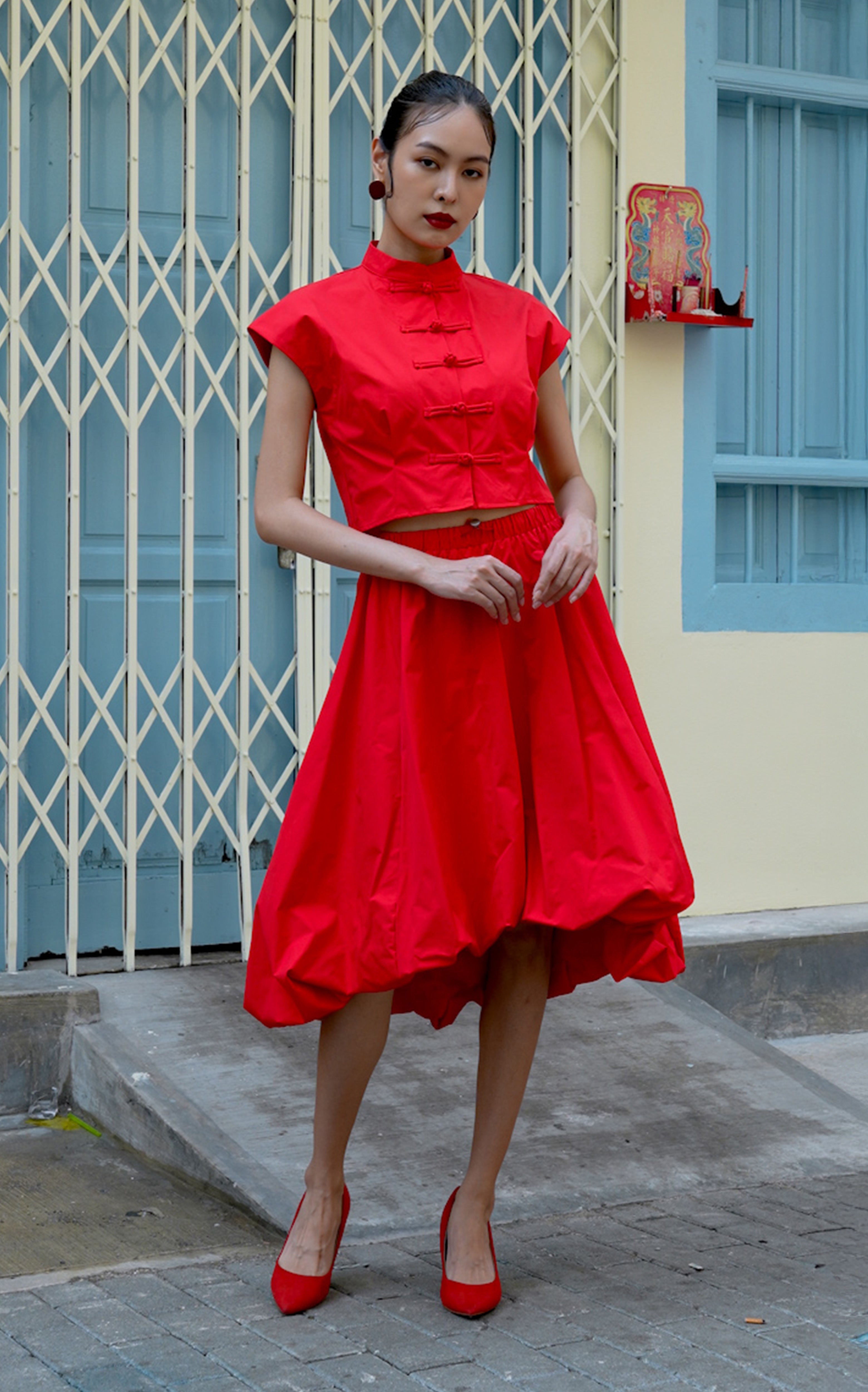 Bubble Hem High-Low Cotton Skirt CNY(Pre-Order)