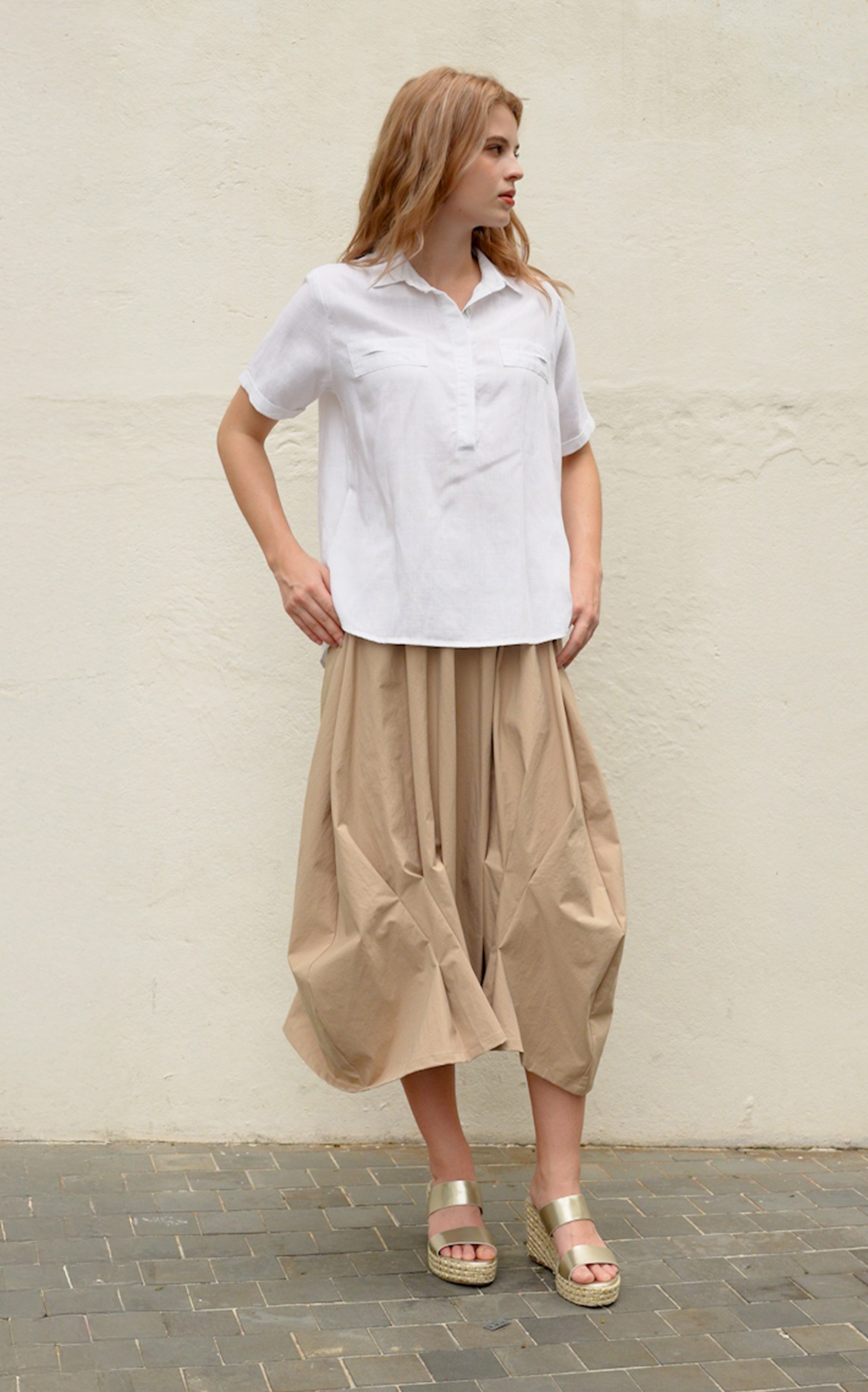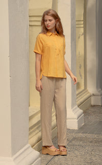Asymmetry Hem Linen Blend Shirt - Yellow / S/M