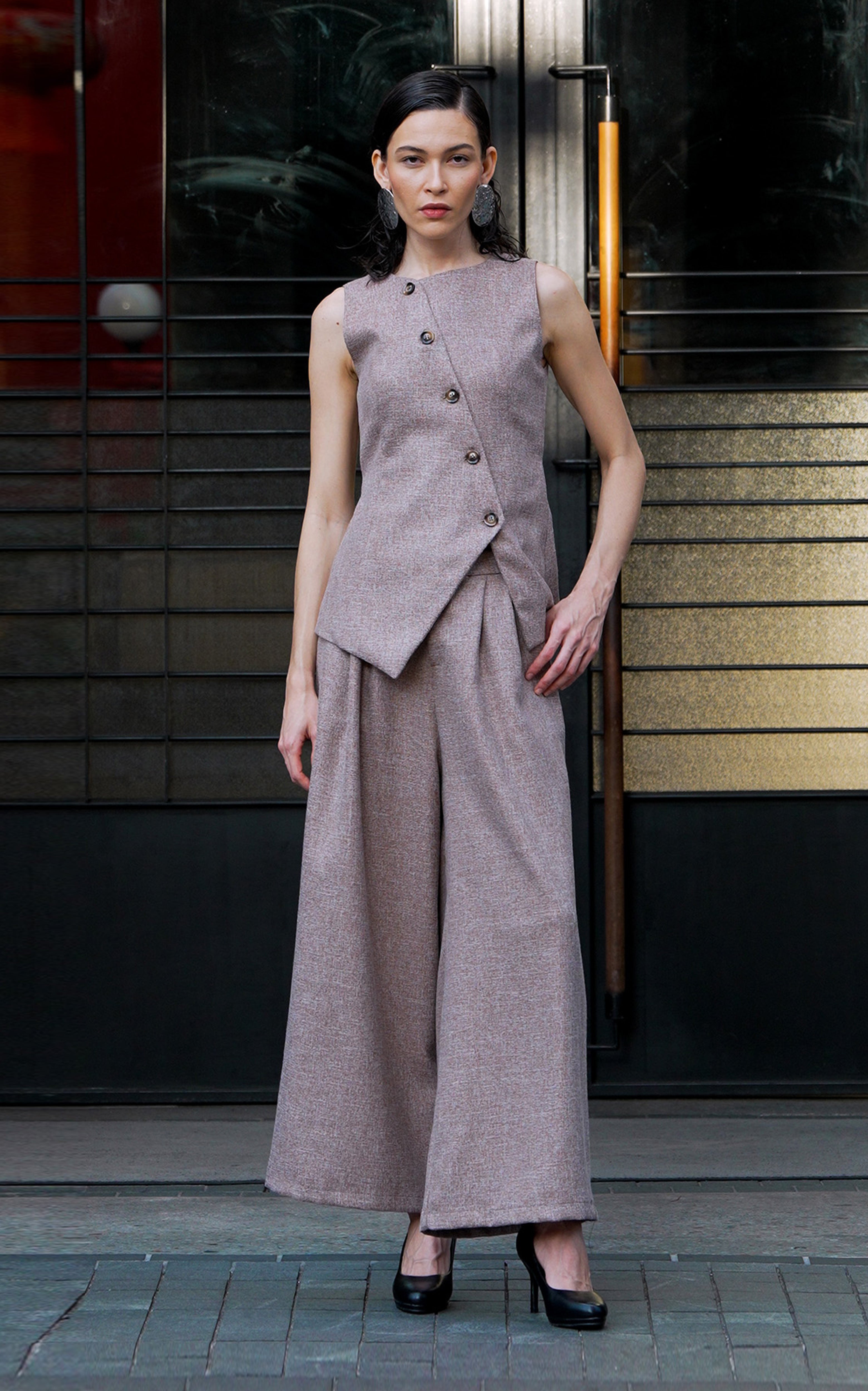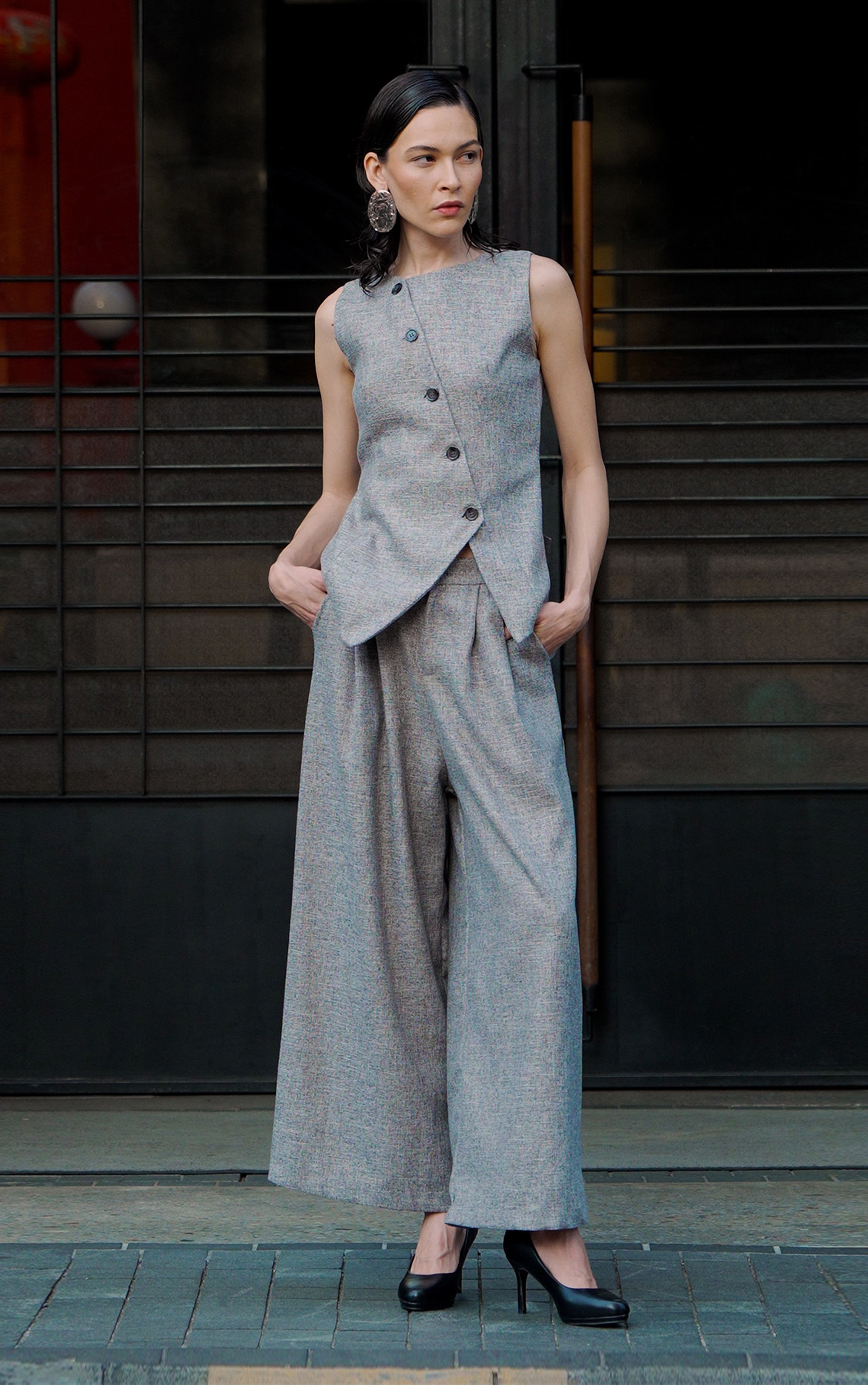 Asymmetrical Front Tweed Tailored Vest Top